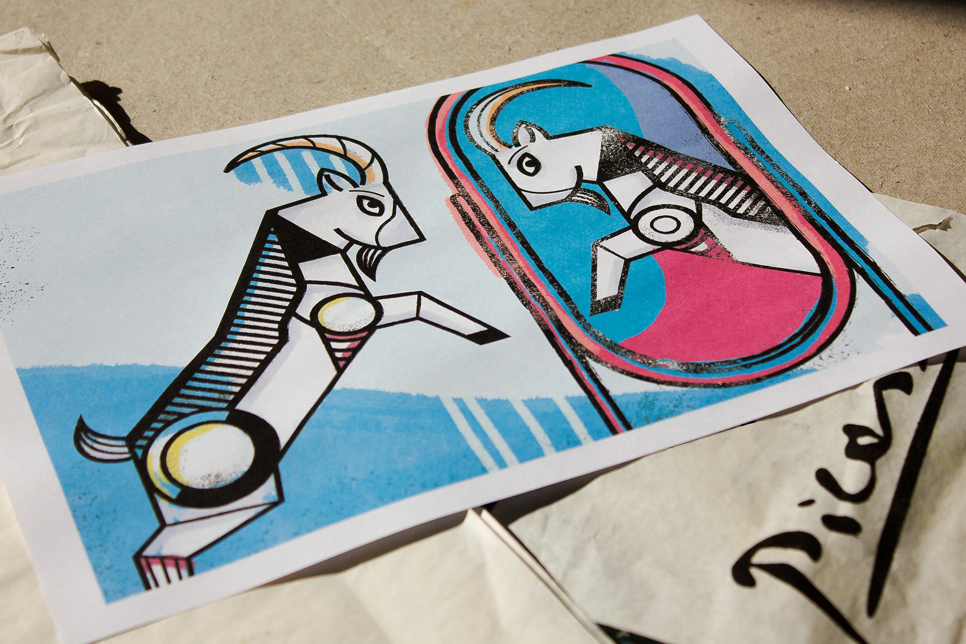 I decided to draw the famous Fighting Goats of Poznań. The inspiration for my work was Picasso's "Girl before a Mirror".